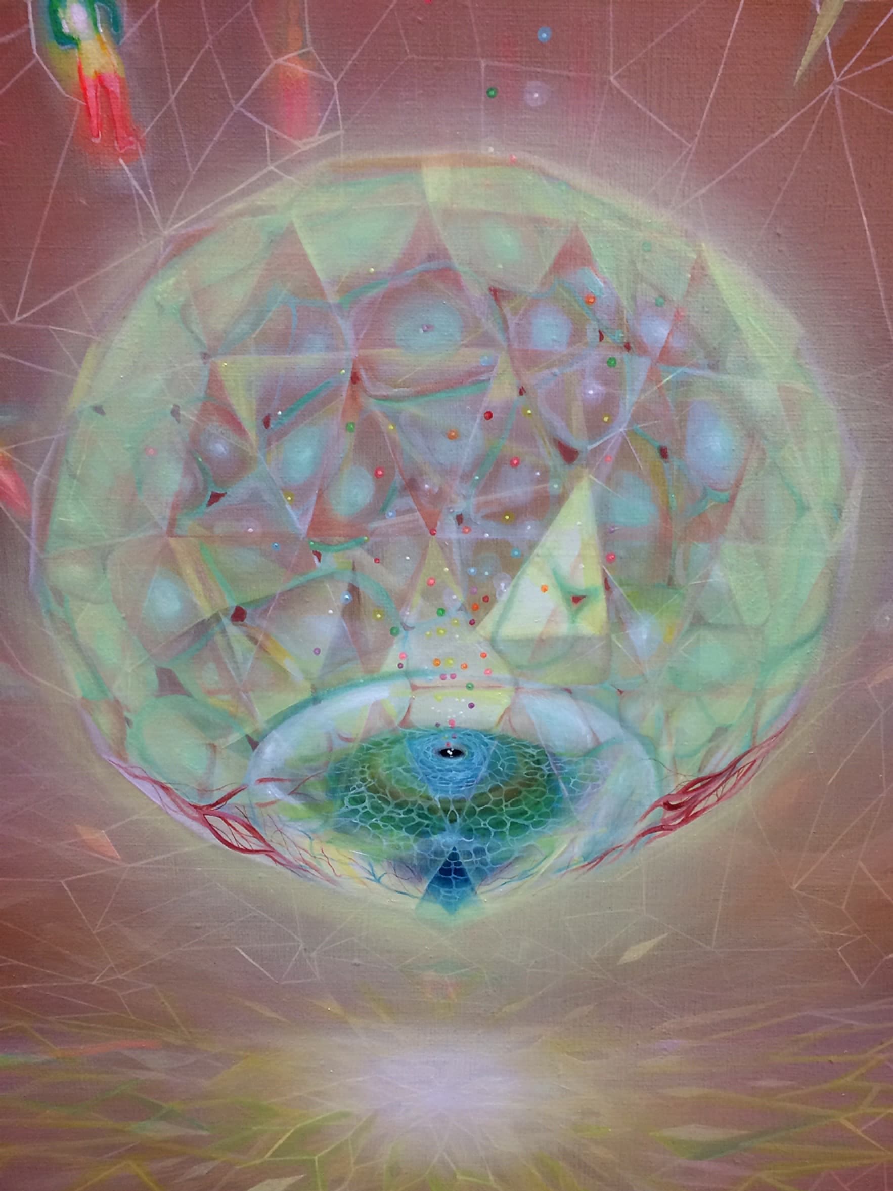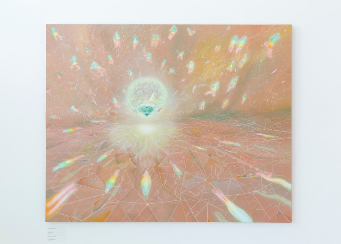 〈スクロールしてご覧ください〉 Prismatic Cycle キャンバス 油彩 1620㎜×1300㎜ 2018年制作 太陽の光が地球に届くまで約8分。夜空の星々も過去からの光だ。では未来から光が届くとしたら、何を映しだすのだろう。 これから生まれてくる人々、生き物たちがプリズムのように あたらしい光のなかに浮かび上がる様子を存在への肯定と祝福 を込めて、レクイエムからいちばん遠い場所を描いた。 BACK ページトップへ